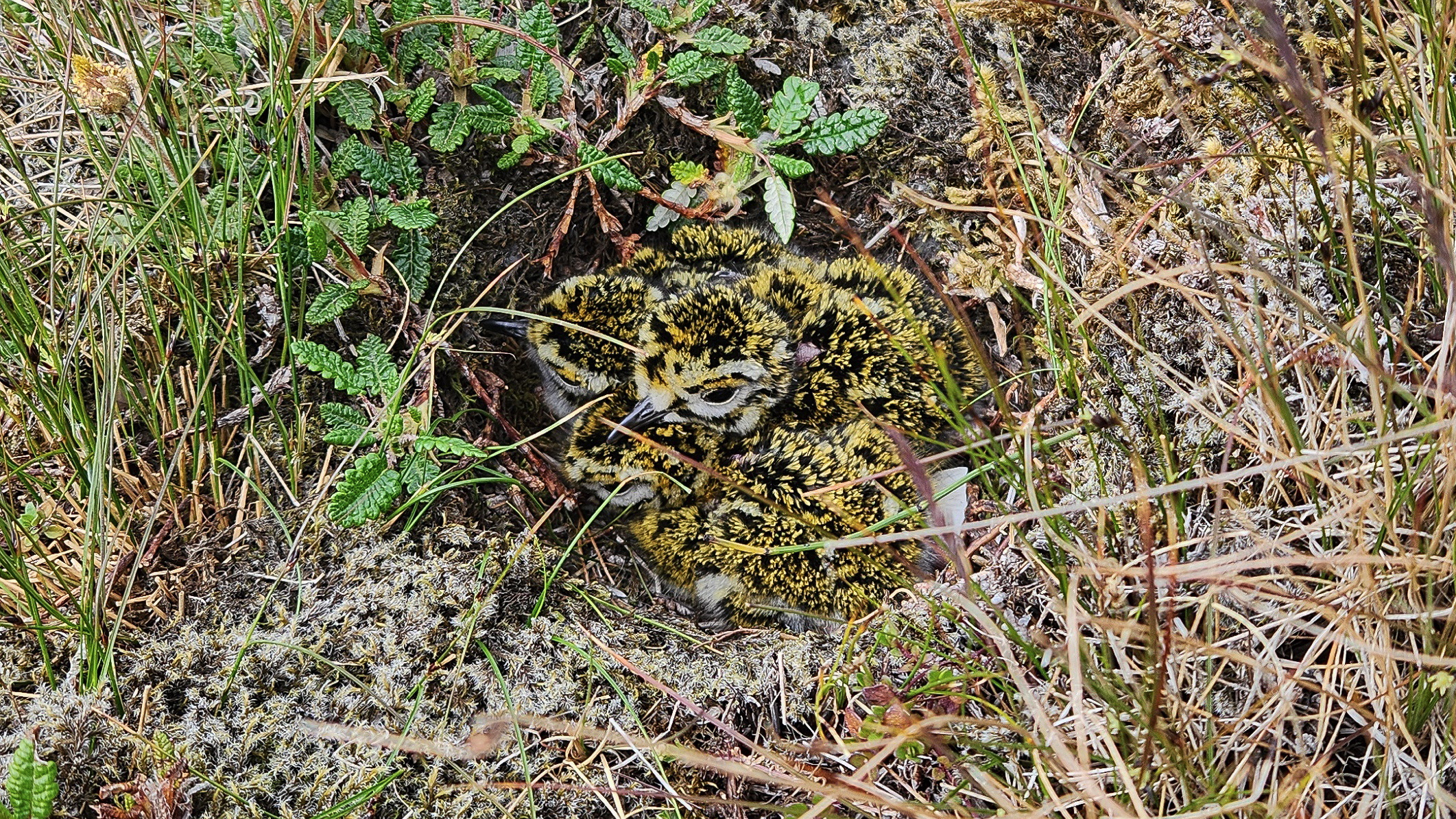 Esther & Pierre were also thrilled to discover a golden plover’s nest with four eggs. In mid-June, incredibly fluffy, adorable golden chicks hatched. I did not see any eggs or chicks myself and I suspect that was kept from me on purpose. But why?