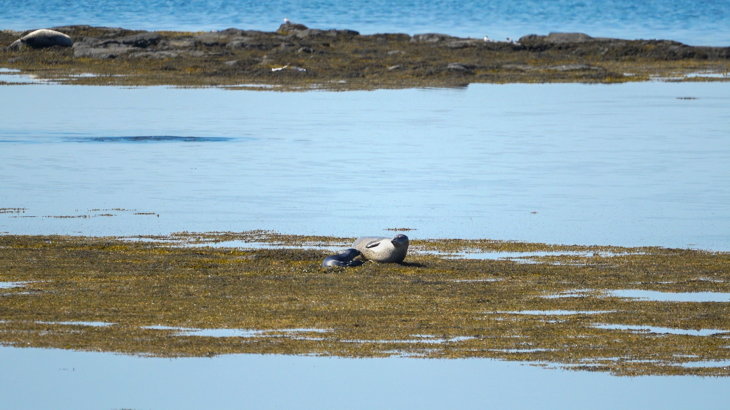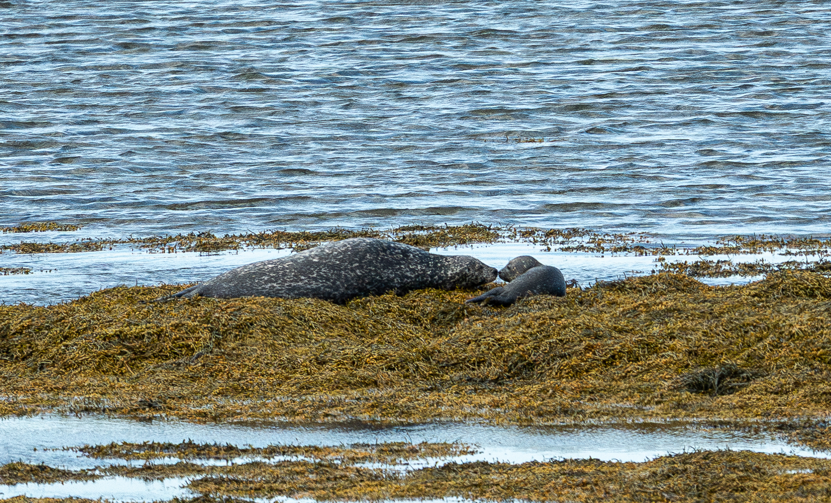 In addition to the birds, there are also numerous seals along the coast, and they can even be spotted from inside the Mirror Houses. A special highlight was the birth of the seal pups from mid-May. From the beach in front of the holiday homes, I could watch the little creatures as they discovered the sea by swimming and splashing around, cuddling with their mothers, and nursing from her. Esther was particularly fascinated and kept the camera running until the battery was empty or the memory card was full. Many tasks had to be put on hold, and Pierre had to take care of my walks.